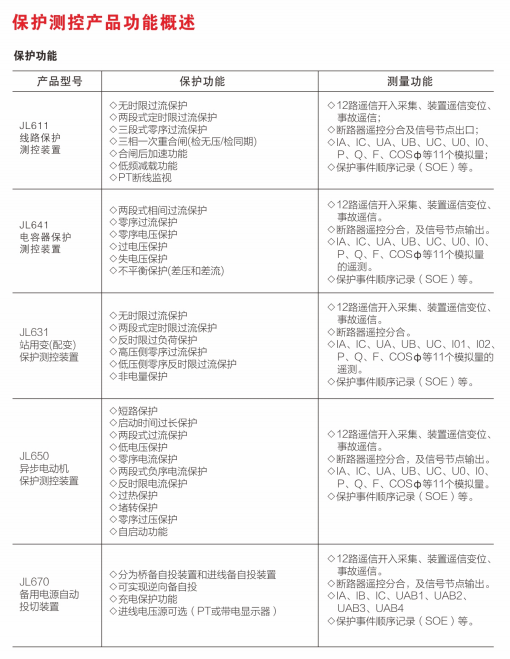 JL600系列裝置包括以下5類保護裝置:
