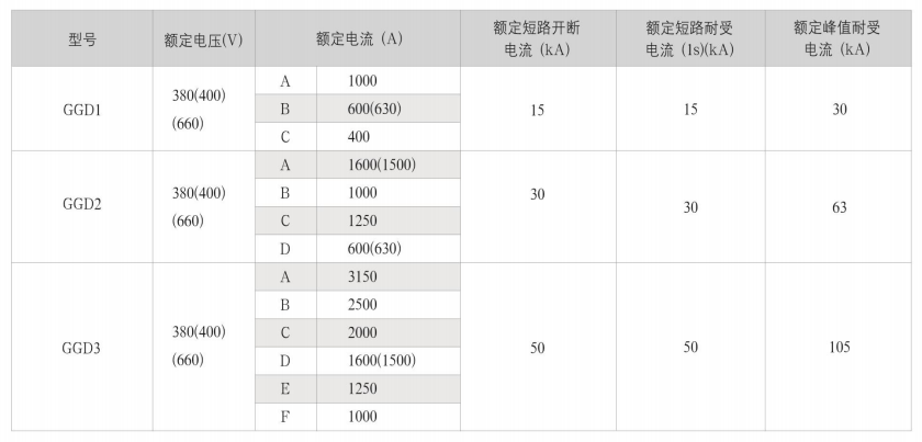 GGD低壓固定式成套開關(guān)設(shè)備(以下簡稱配電柜)適用于發(fā)電廠、變電所、工礦企業(yè)等電力用戶作為交流50Hz(60Hz),額定工作電樂380V(400V)、(660V),額定電流至3150A的配電系統(tǒng)中作為動(dòng)力,照明及配電設(shè)備的電能轉(zhuǎn)換,分配與控制之用。該產(chǎn)品具有分?jǐn)嗄芰Ω?、?dòng)熱穩(wěn)定性好,額定短時(shí)耐受電流達(dá)50KA。電氣方案靈活、組合方便、實(shí)用性強(qiáng)、結(jié)構(gòu)新穎、防護(hù)等級(jí)高等特點(diǎn)。該產(chǎn)品是我國組裝式、固定面板開關(guān)柜的代表產(chǎn)品之一。